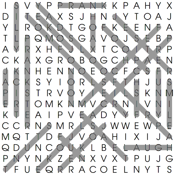 Here is the solution to the April Fools Day-themed wordsearch in this website.
