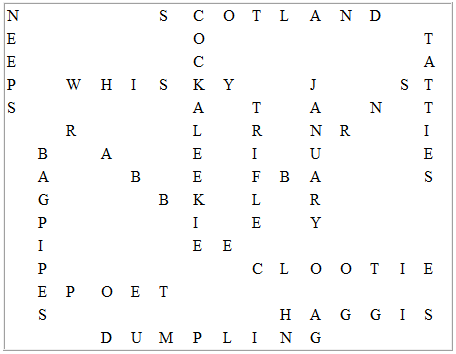 Here is where you can find the Burns Night wordsearch and anagram puzzles that these are the solutions to.