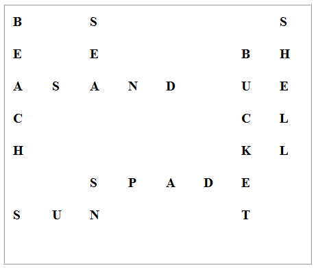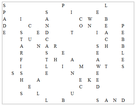 Solutions to the Seaside wordsearch and Easy Seaside wordsearch on this site.