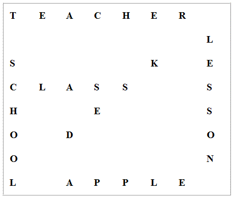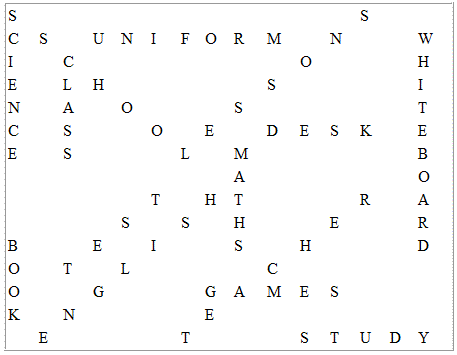 Solutions to the Back To School Puzzle on this site.