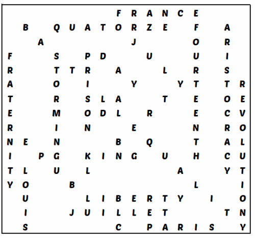 Solutions to the Bastille Day Wordsearch on this site.