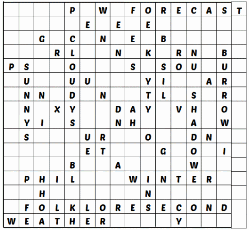 Solutions to the Groundhog Day Wordsearch on this site.