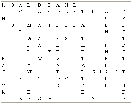 Solutions to Roald Dahl wordsearch and anagrams on this site.