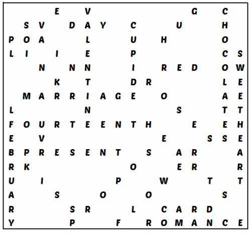 Solutions to St. Valentine's Day Puzzle on this site.
